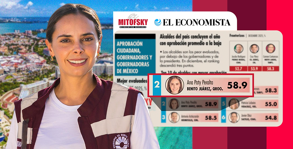 La presidenta municipal de Benito Juárez, Ana Paty Peralta, fue ubicada entre los liderazgos municipales mejor evaluados del país, de acuerdo con una encuesta nacional realizada por la firma Mitofsky, que analizó el nivel de aprobación ciudadana de 150 alcaldes y alcaldesas en México.